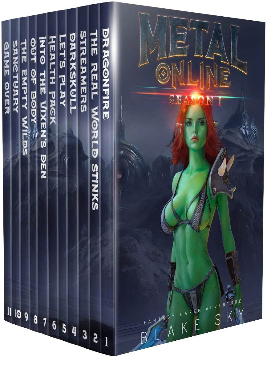 Metal Online: Season 1 is a collection of the nine episodes that make up the first arc of this steamy LitRPG harem series. If you enjoy cyberpunk detective stories, fast-paced action, explicit sex, striking women, and the duality of virtual/real life, then you’ll love Blake Sky’s descent into a heavy metal infused dark fantasy world.